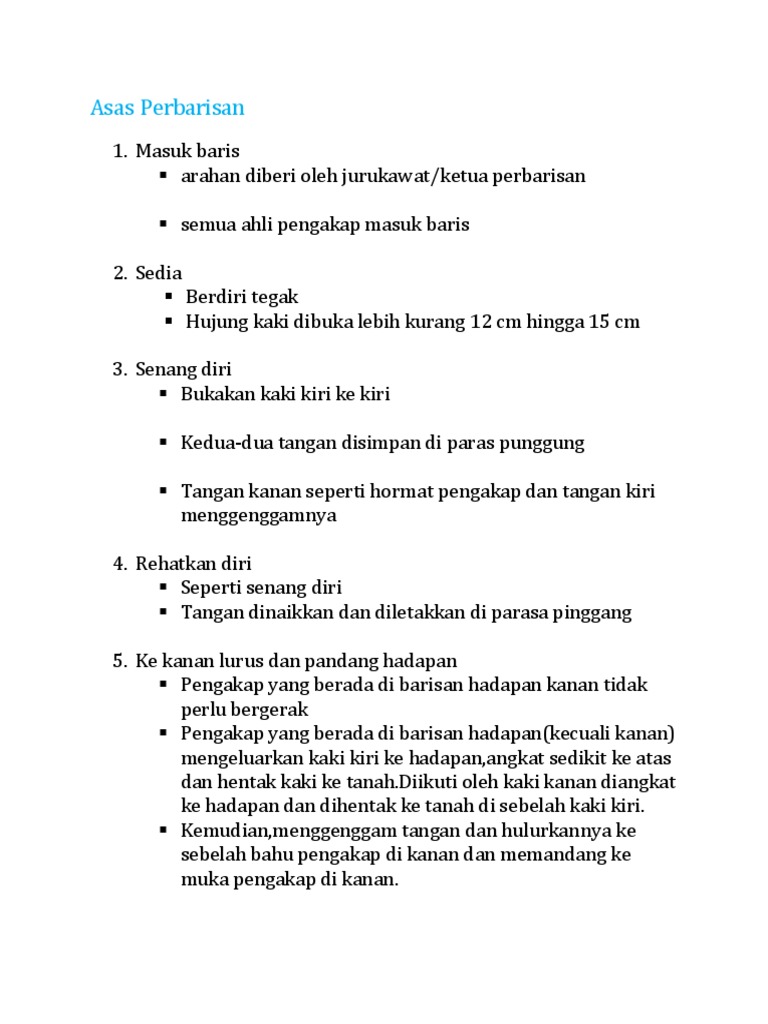 A short summary of this paper. Yang tinggi ke kanan rendah ke kiri dalam satu barisan paras sh am 3. Biasanya arahan akan diberikan oleh ketua perbarisan atau lebih dikenali sebagai jurukawat.